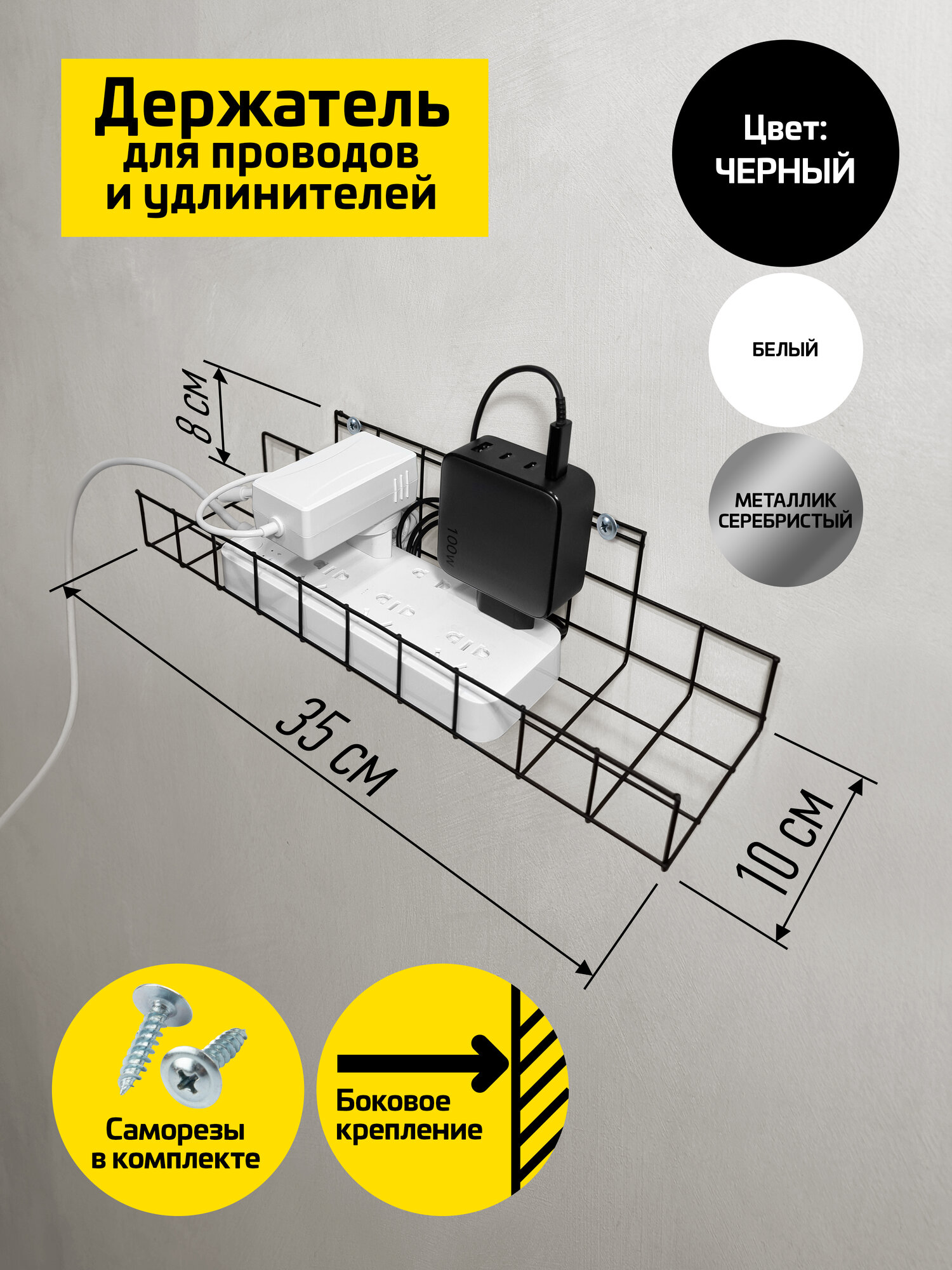 Держатель для удлинителей с боковым креплением, черный, 35х10 см информация: