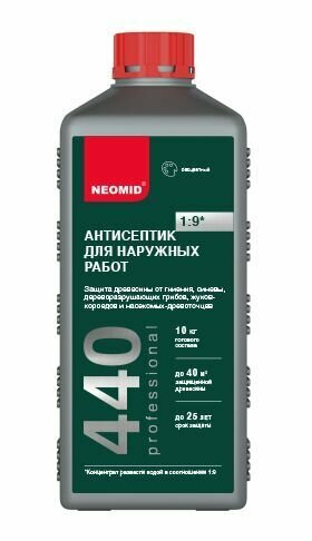 Антисептик для дерева NEOMID 440 концентрат 1:9 проникновения бесцветный 1 кг (10кг готового раствора) информация: