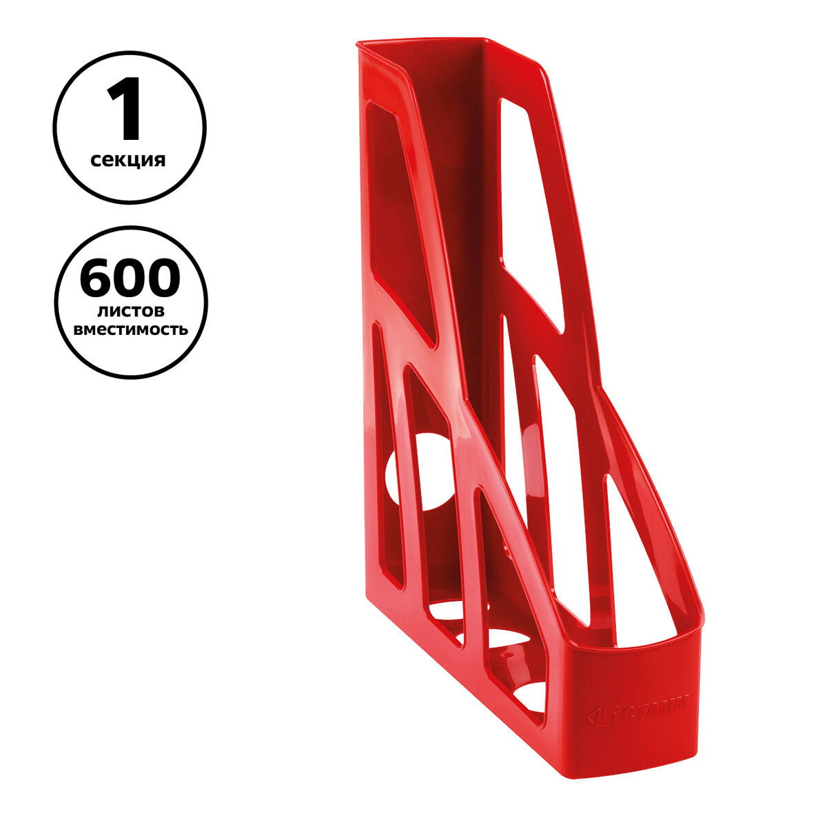 Лоток для бумаг вертикальный канцелярский / подставка, органайзер для документов А4 СТАММ "Лидер" сборный пластиковый, 1 секция, красный