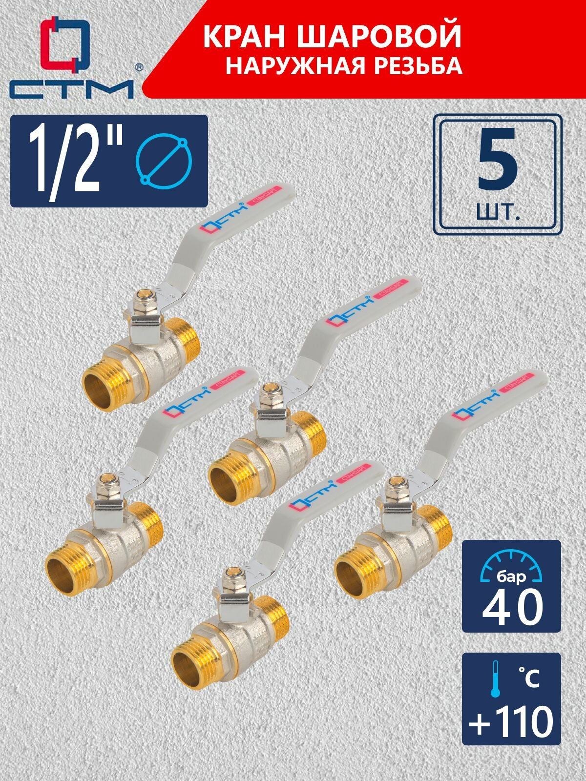 Кран шаровый 1/2" для воды наружная резьба СТМ стандарт латунь 5 шт информация: