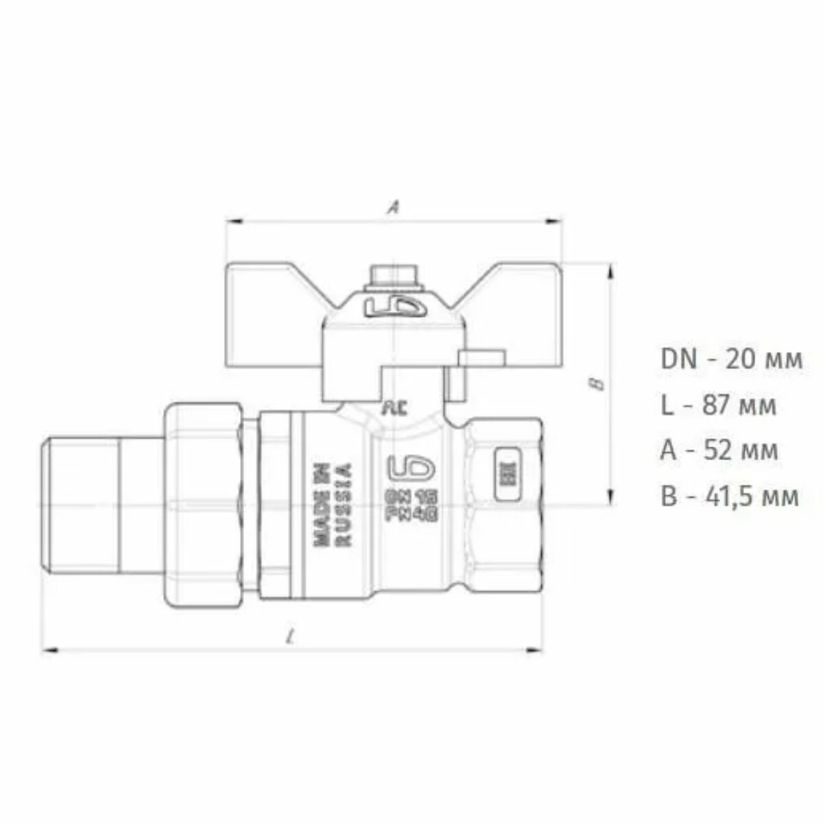 LD Pride Кран шаровой латунный 47.20.В-ГШ.Б, вн.резьба/"американка", ручка-бабочка, 3/4" LD 47.306.20