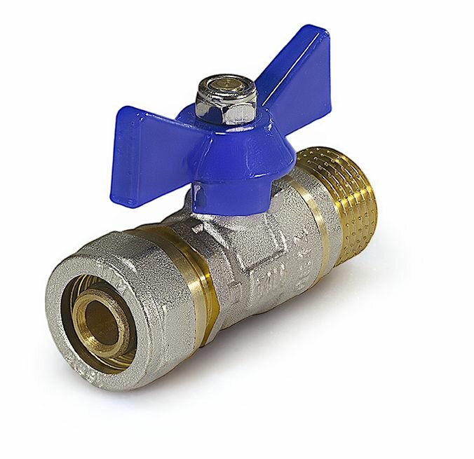 10 цен на Кран шаровый никелированный 1/2" нар - Ф16 цанга (синяя ручка-бабочка)TIM BV206-02MN