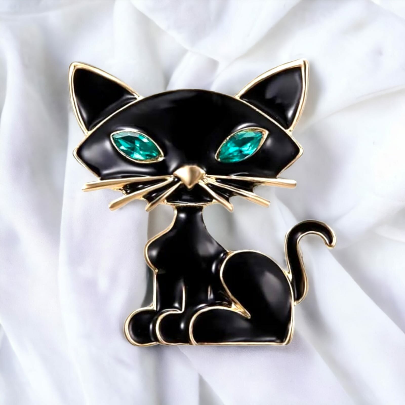Брошь булавка женская кошка эмаль, стразы бижутерия 304 ₽