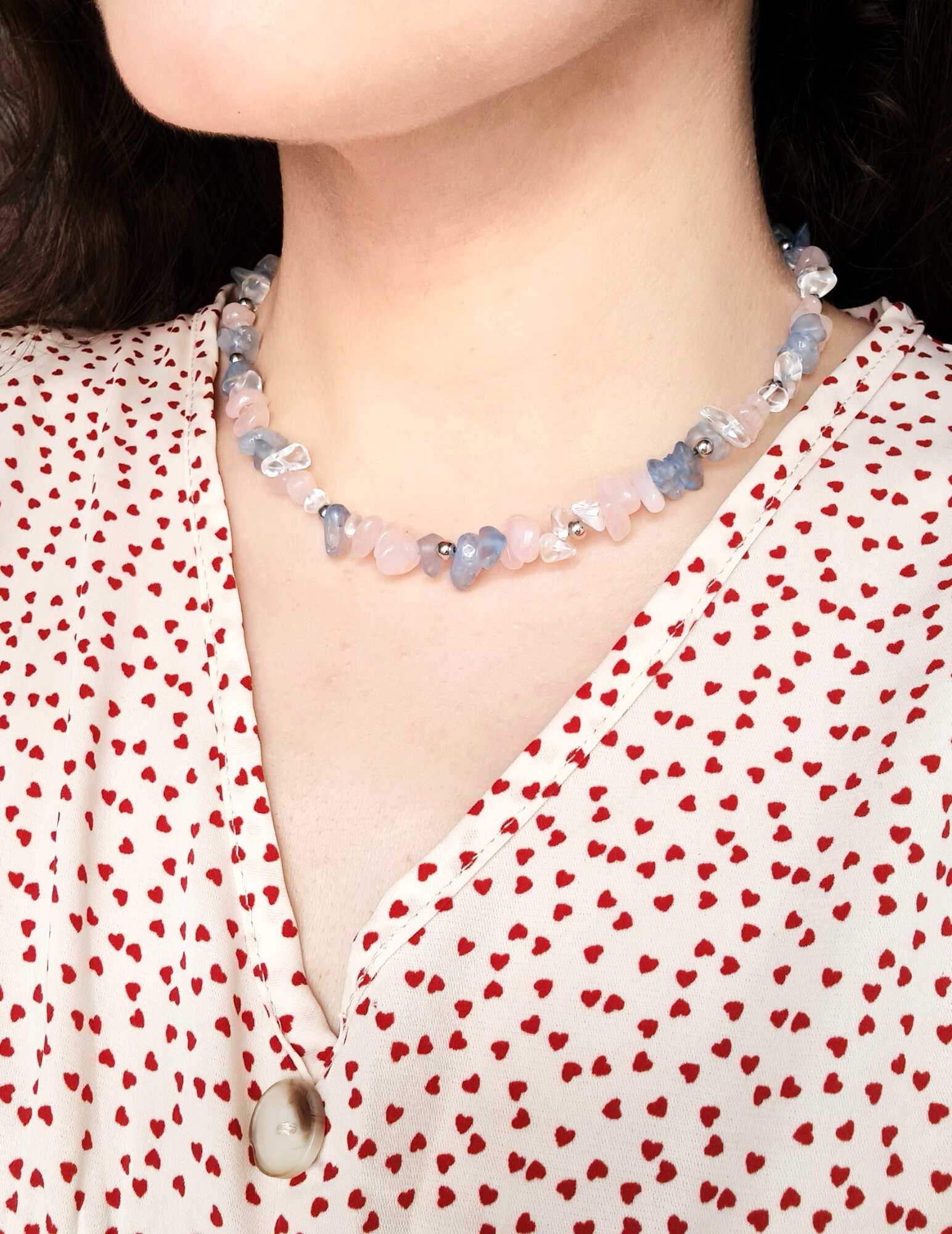 Чокер на шею ENJOY Pretty Girl колье ожерелье бусы микс розовый кварц аквамарин горный хрусталь 1 330 ₽