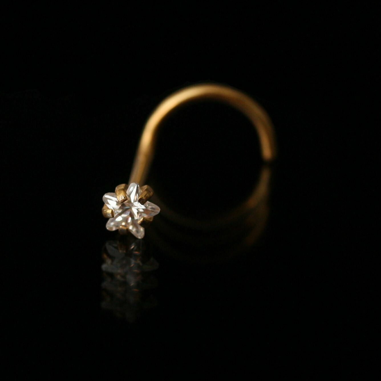 Серьга для пирсинга носа "улитка" 7мм, с кристаллом "звездочка" 3мм