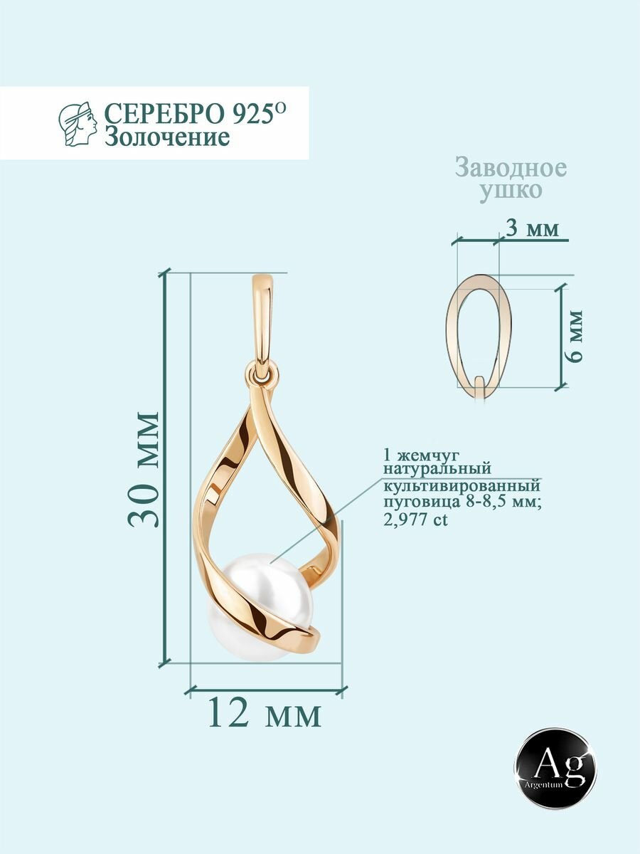 Подвеска Argentum, серебро, 925 проба, золочение, жемчуг, размер 3 см., золотистый информация: