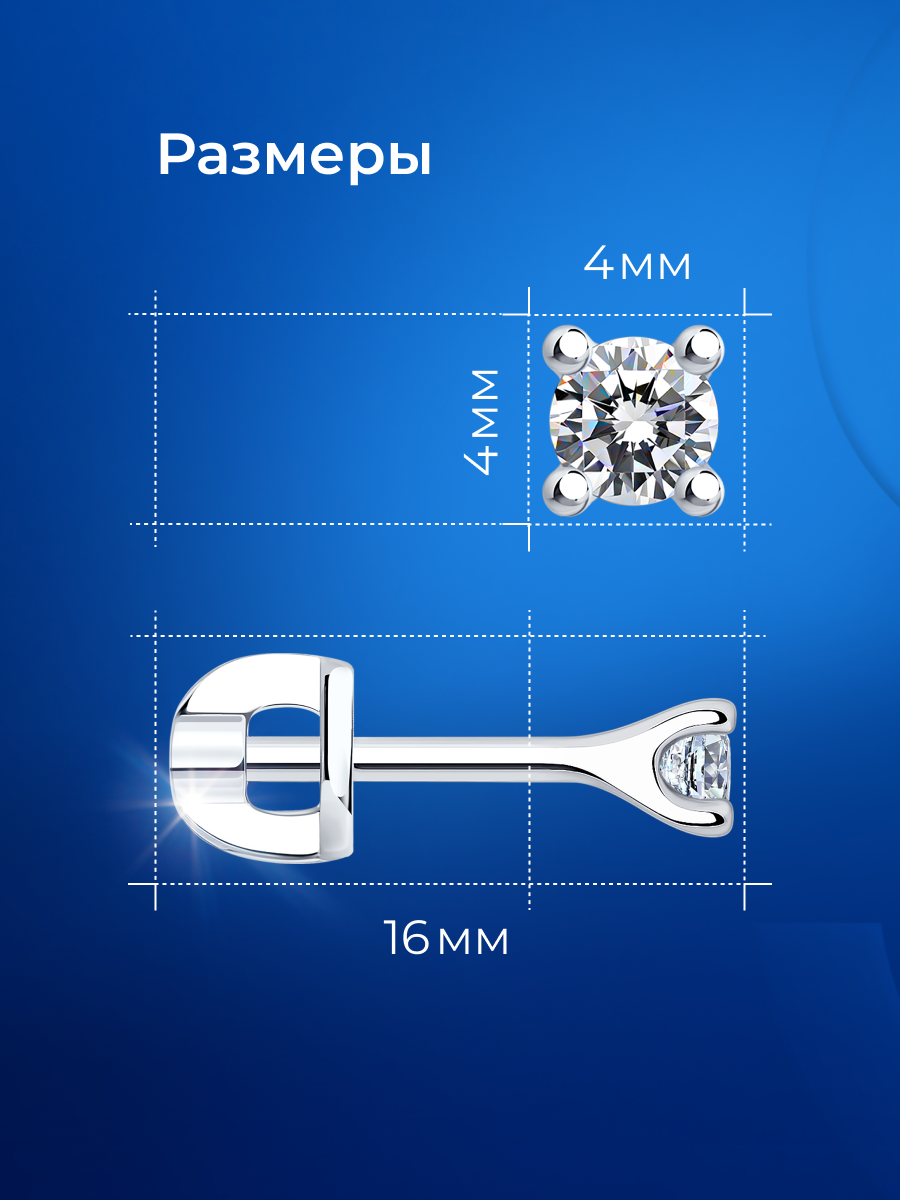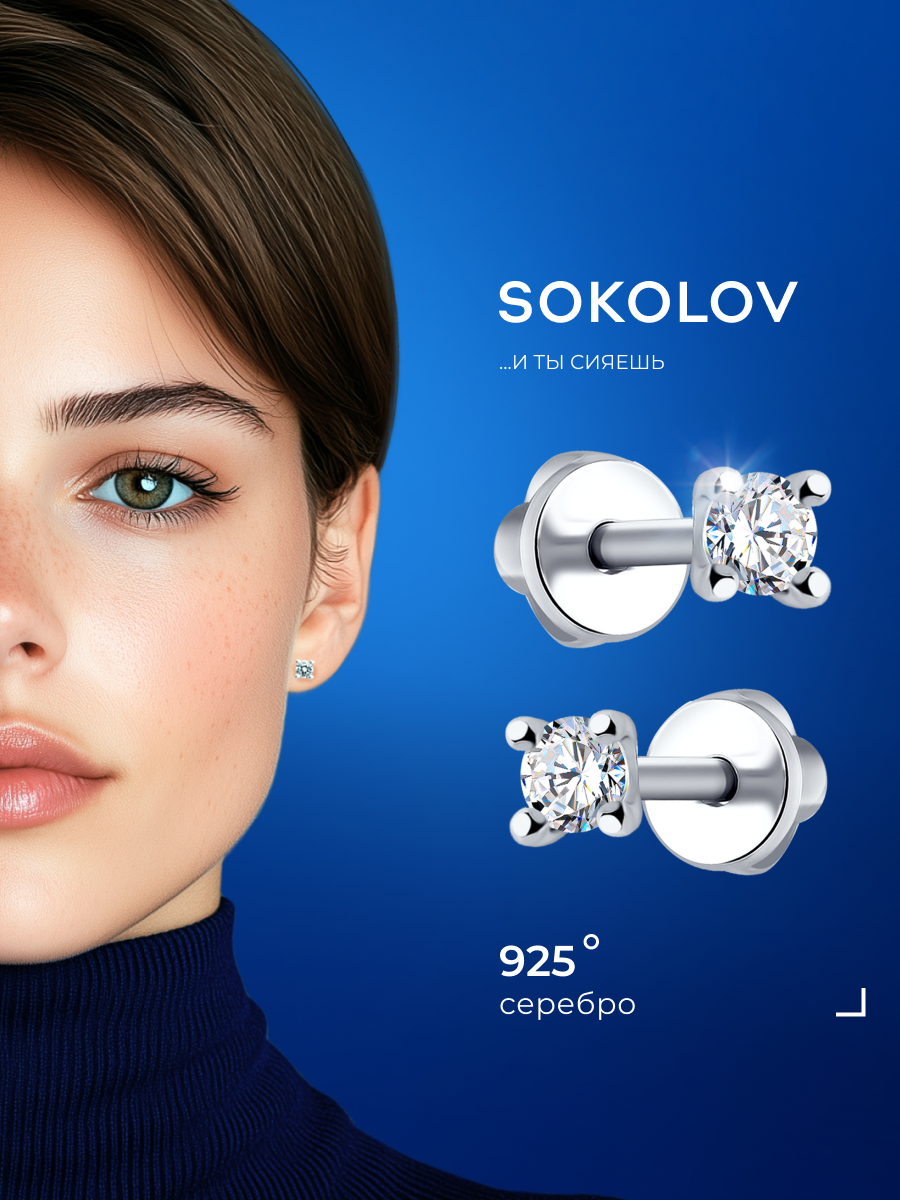 Отзывы на Серьги пусеты SOKOLOV, серебро, 925 проба, родирование, фианит, размер 5 мм