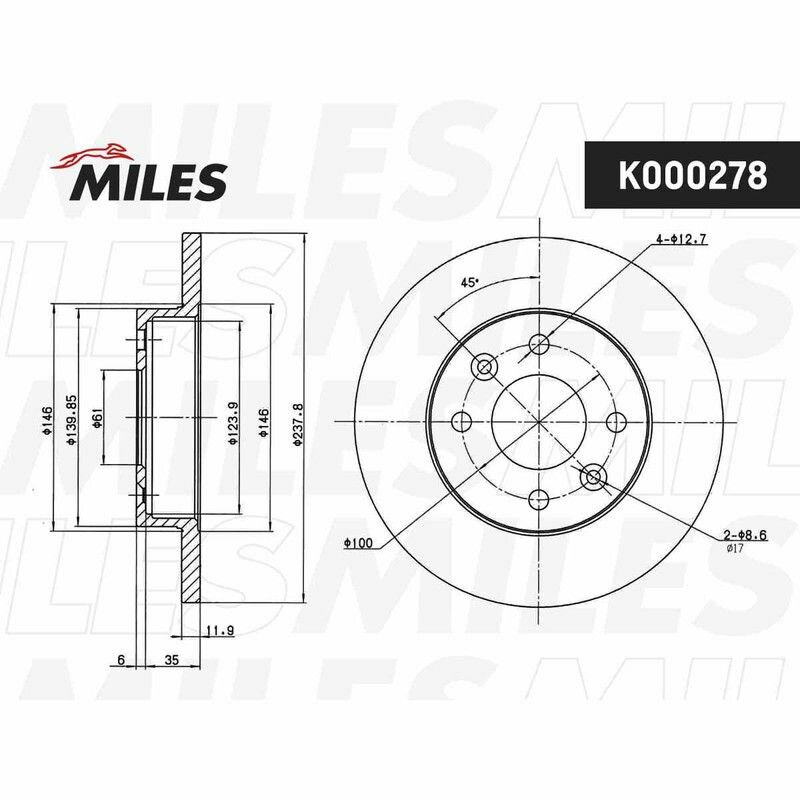 Диск тормозной передний MILES K000278 для а/м Renault Logan I до 2009 г. в с двигателем 1.4. Невентелируемый без ABS. 238х12 мм. Диск тормозной передний MILES K000278 для а/м Renault, DACIA информация: