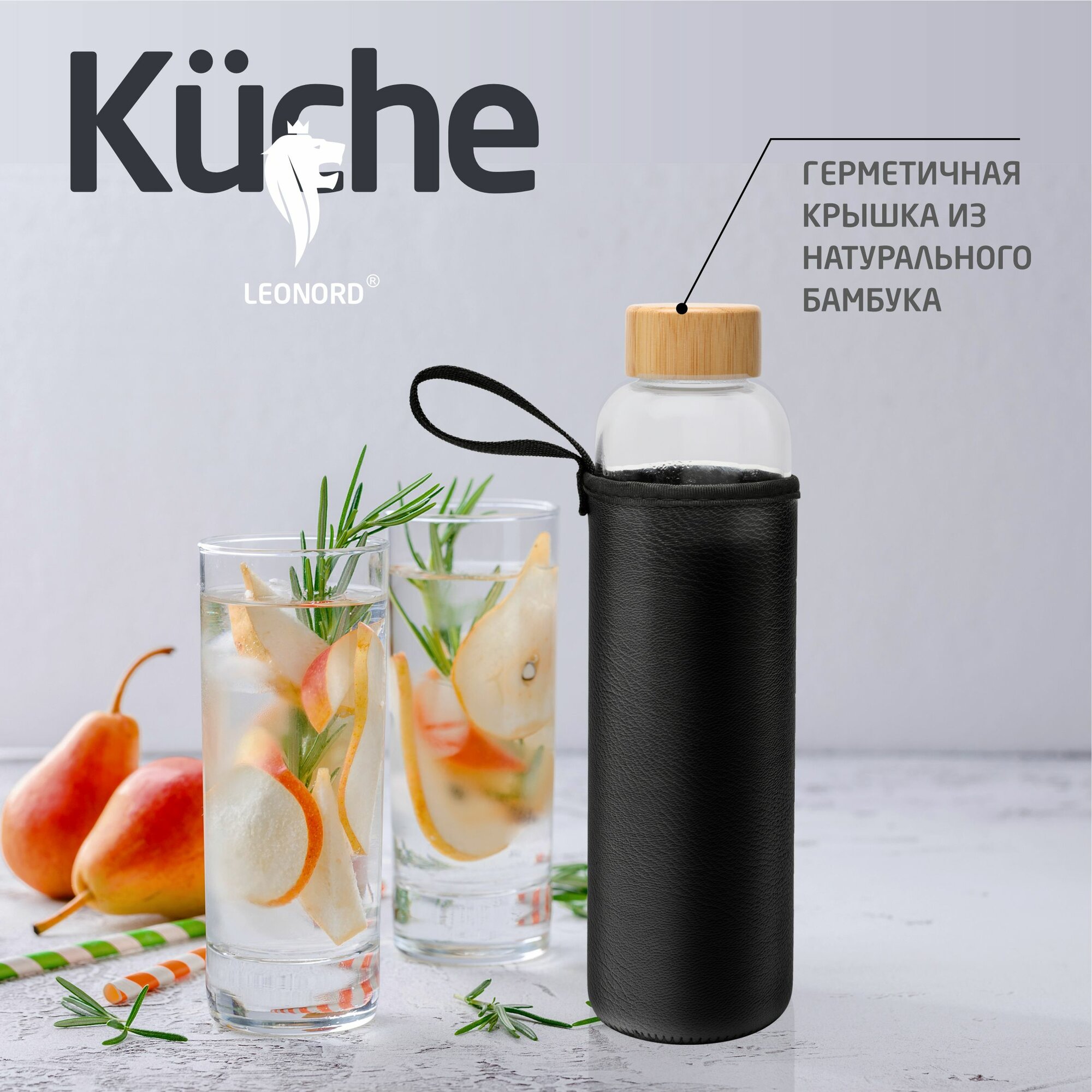 Отзывы на Бутылка для воды из термостойкого стекла в чехле с бамбуковой крышкой Leonord Phantasie, 800 мл