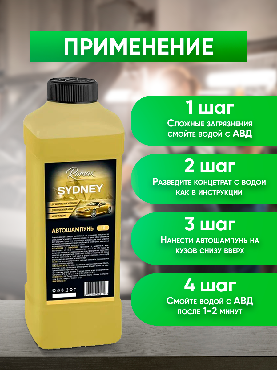Автошампунь "ROMAX SIDNEY" 1 л информация: