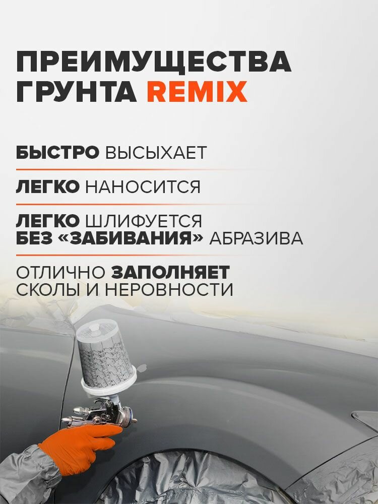 10 цен на ГРУНТ автомобильный акриловый HB 2K 4:1 CЕРЫЙ 0,8 л + 0,2 л отвердитель, REMIX PRIMER HB двухкомпонентная грунтовка