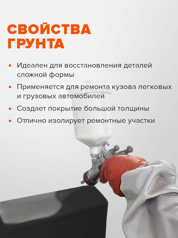 ГРУНТ автомобильный акриловый HS 2K 4:1 ЧЕРНЫЙ 0,8 л + 0,2 л отвердитель, / для автомобиля ремонт кузова