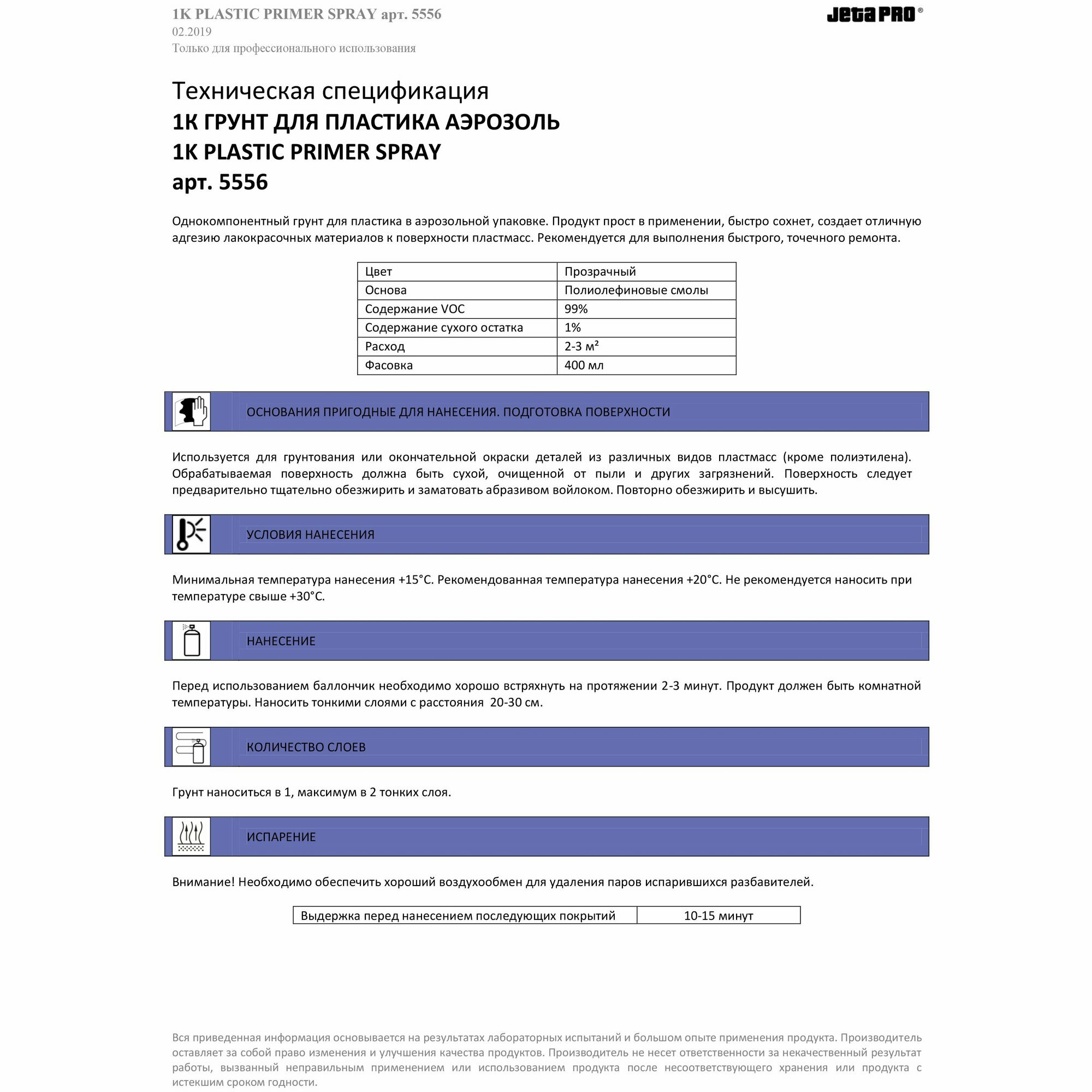 Грунт адгезионный JETAPRO 5556 1К для пластика серый аэрозоль 400мл информация: