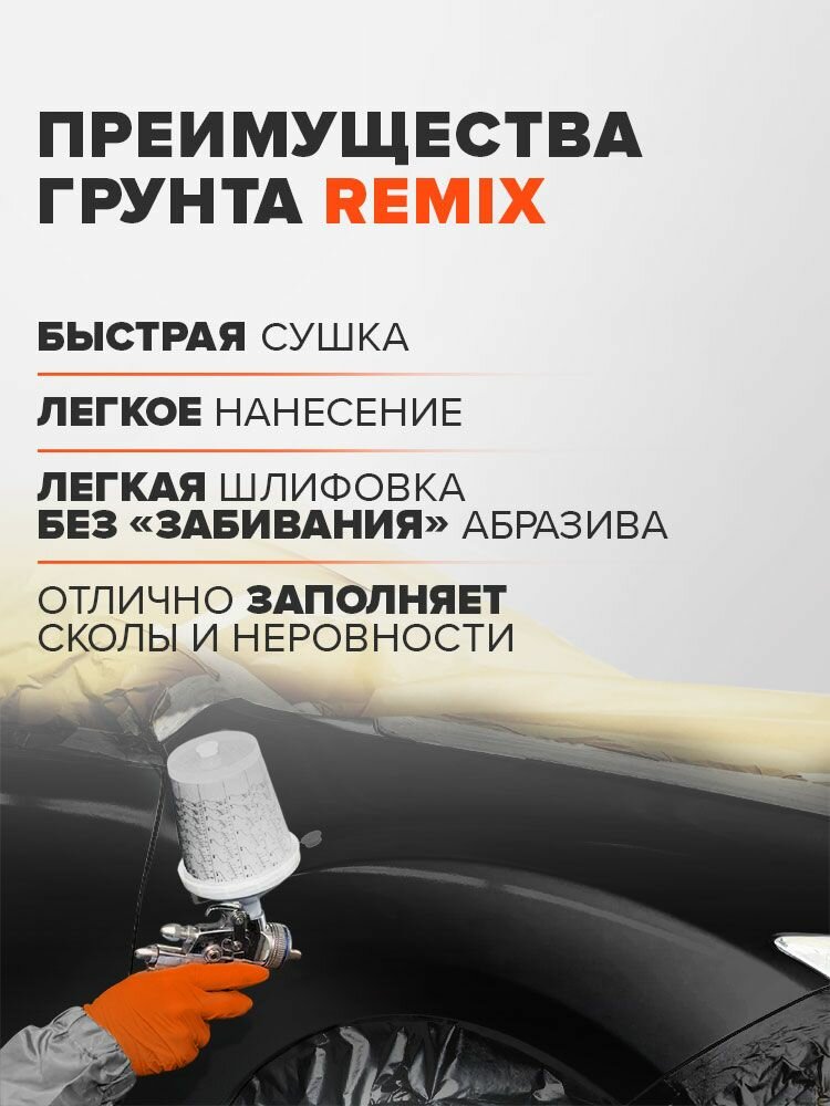 ГРУНТ автомобильный акриловый HS 2K 4:1 СЕРЫЙ 0,8 л + 0,2 л отвердитель / REMIX HS PRIMER / двухкомпонентная грунтовка