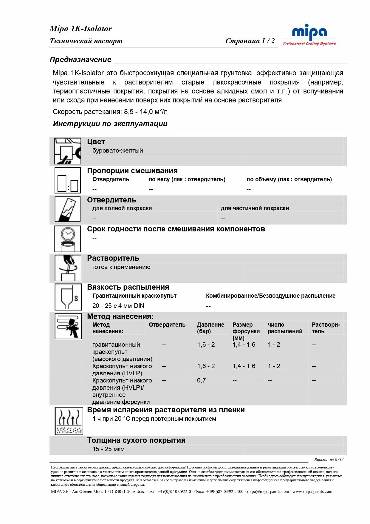 Mipa Грунт изолятор1K-Isolator Буровато-желтый 400 мл. информация: