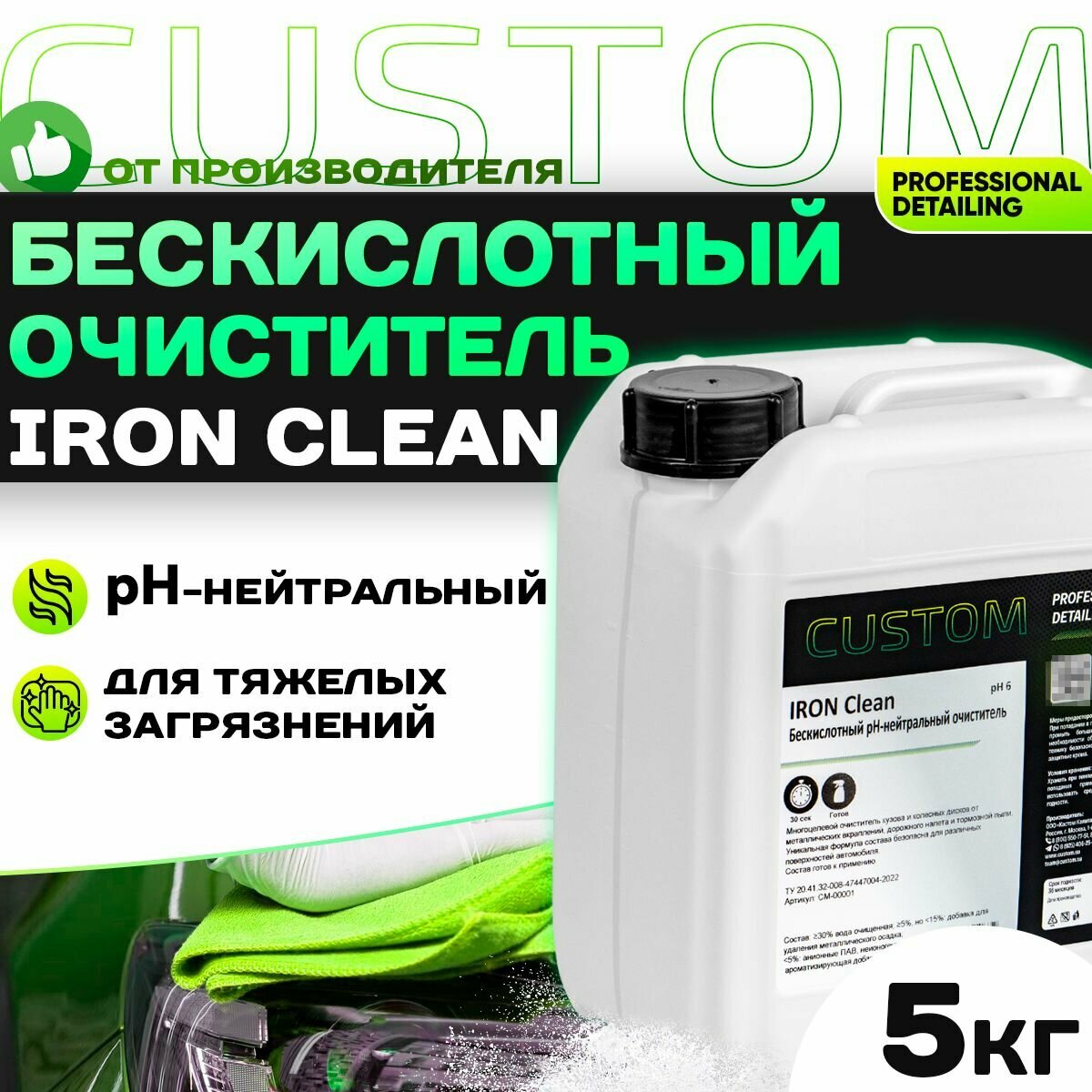 Бескислотный pH-нейтральный очиститель кузова и дисков от металлических вкраплений с индикатором CUSTOM IRON Clean 5 литров информация: