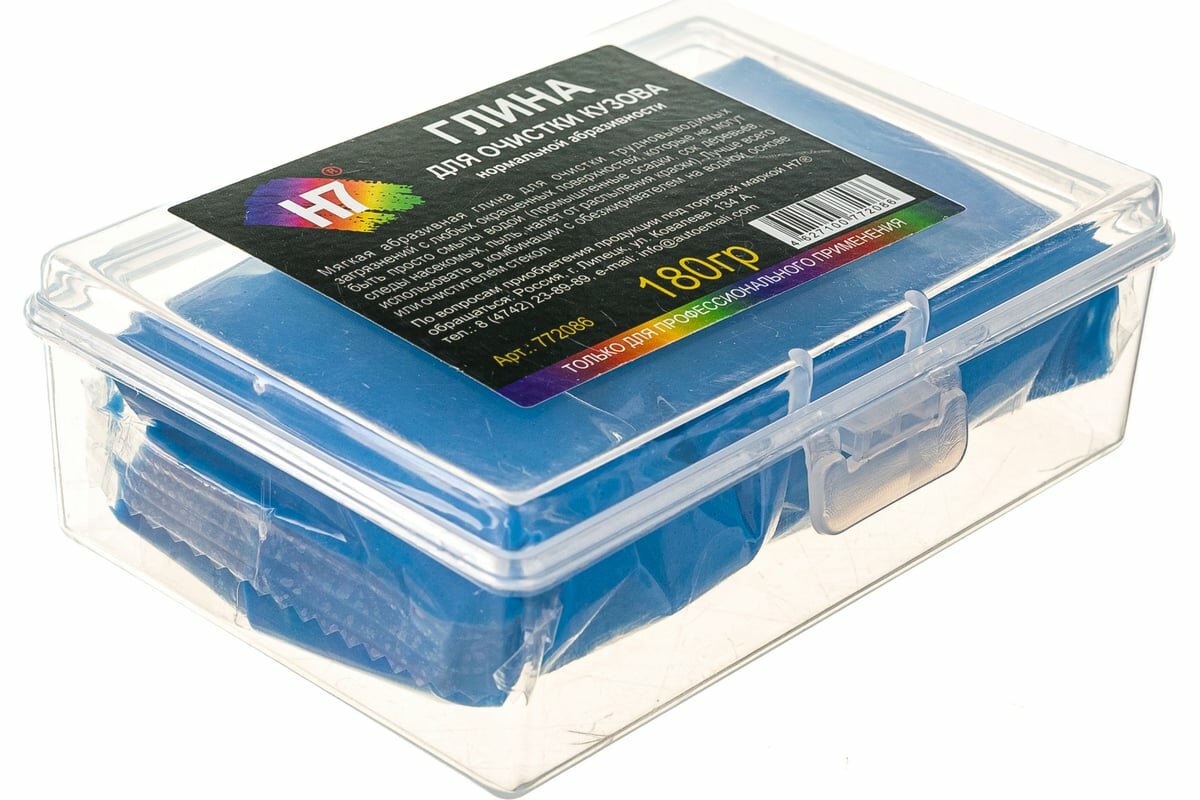 Глина для очистки кузова H7 нормальной абразивности, синяя, 180 г, в пластиковом пенале 772086 информация: