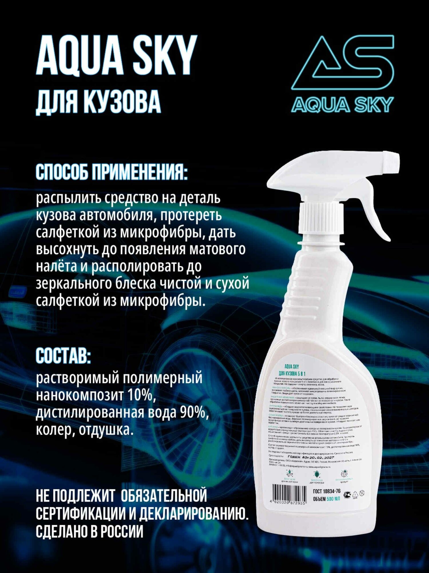 Aqua Sky полироль, защитный полимер для обработки кузова X-treme Car Protector, 0,5 л информация: