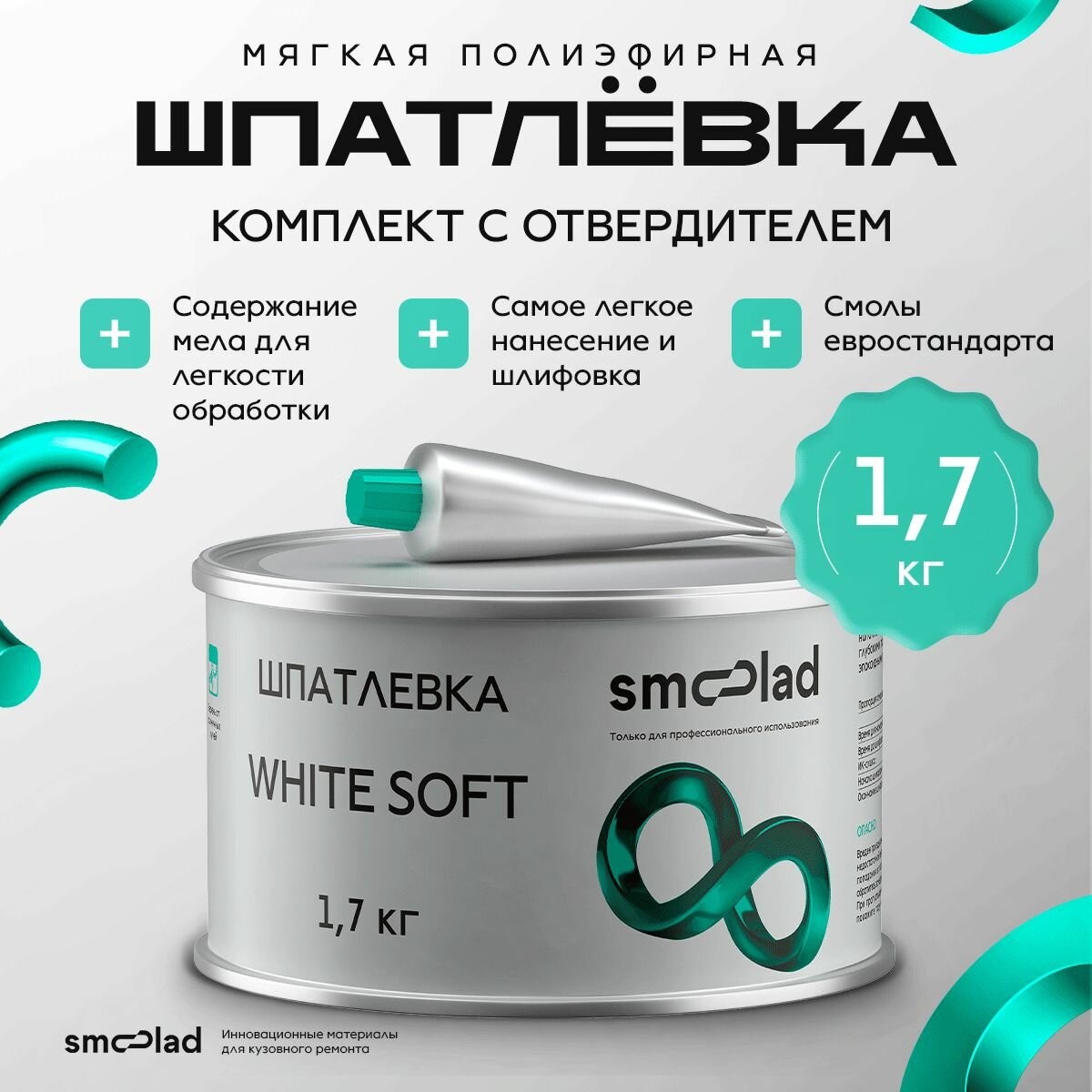 Шпатлевка автомобильная мягкая БЕЛАЯ SMOOLAD WHITE SOFT 1,7 кг + отвердитель информация: