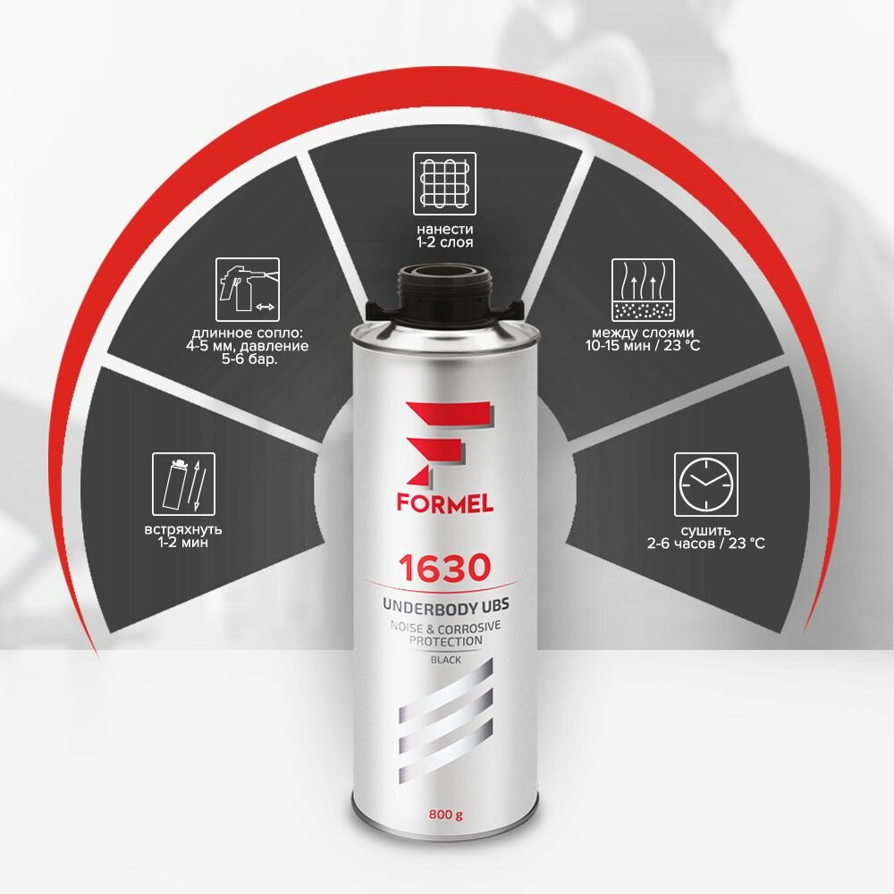 Антикоррозийное покрытие для авто FORMEL 1630 UNDERBODY UBS черный 0,8 кг / антигравий, евробаллон под пистолет информация:
