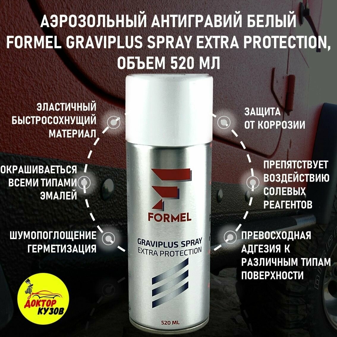 Антигравий для автомобиля / Аэрозольный антикоррозийный состав FORMEL GRAVIPLUS SPRAY белый, аэрозоль, объём 520 мл информация: