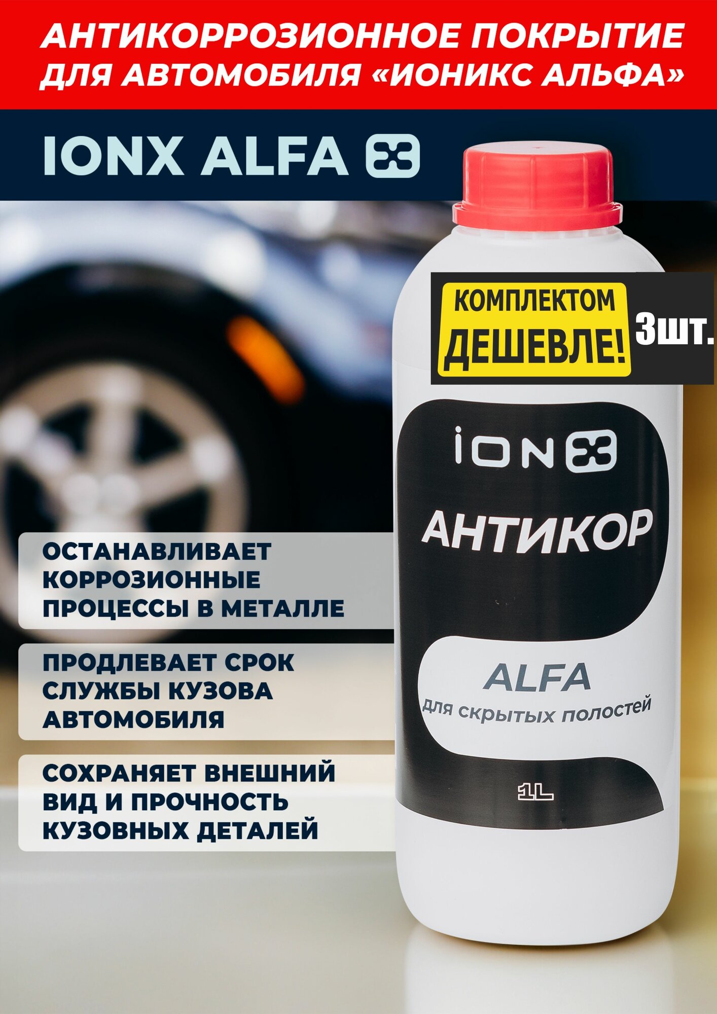 10 цен на Комплект 3 шт: Антикор от ржавчины ионикс Альфа для скрытых полостей, автомобильное антикоррозионное покрытие iONX Alfa, 1л, Аналог раст стоп