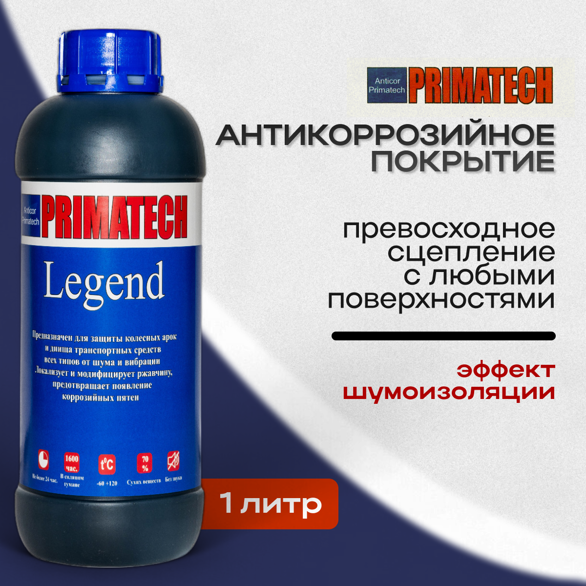 Антикоррозийная битумная мастика для авто с эффектом шумоизоляции PRIMATECH LEGEND 1л. пластиковая тара/антикор для авто информация: