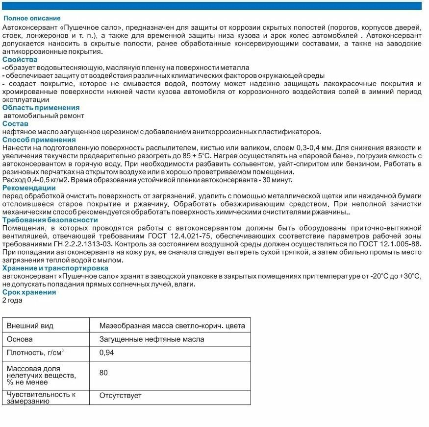 Антикор "Пушечное Сало" 1000Мл Pt182251 информация: