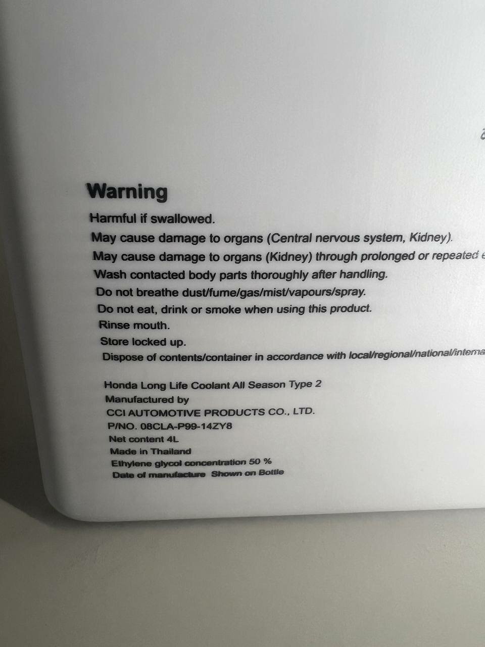 Антифриз Honda Long Life Coolant Type-2 4л информация: