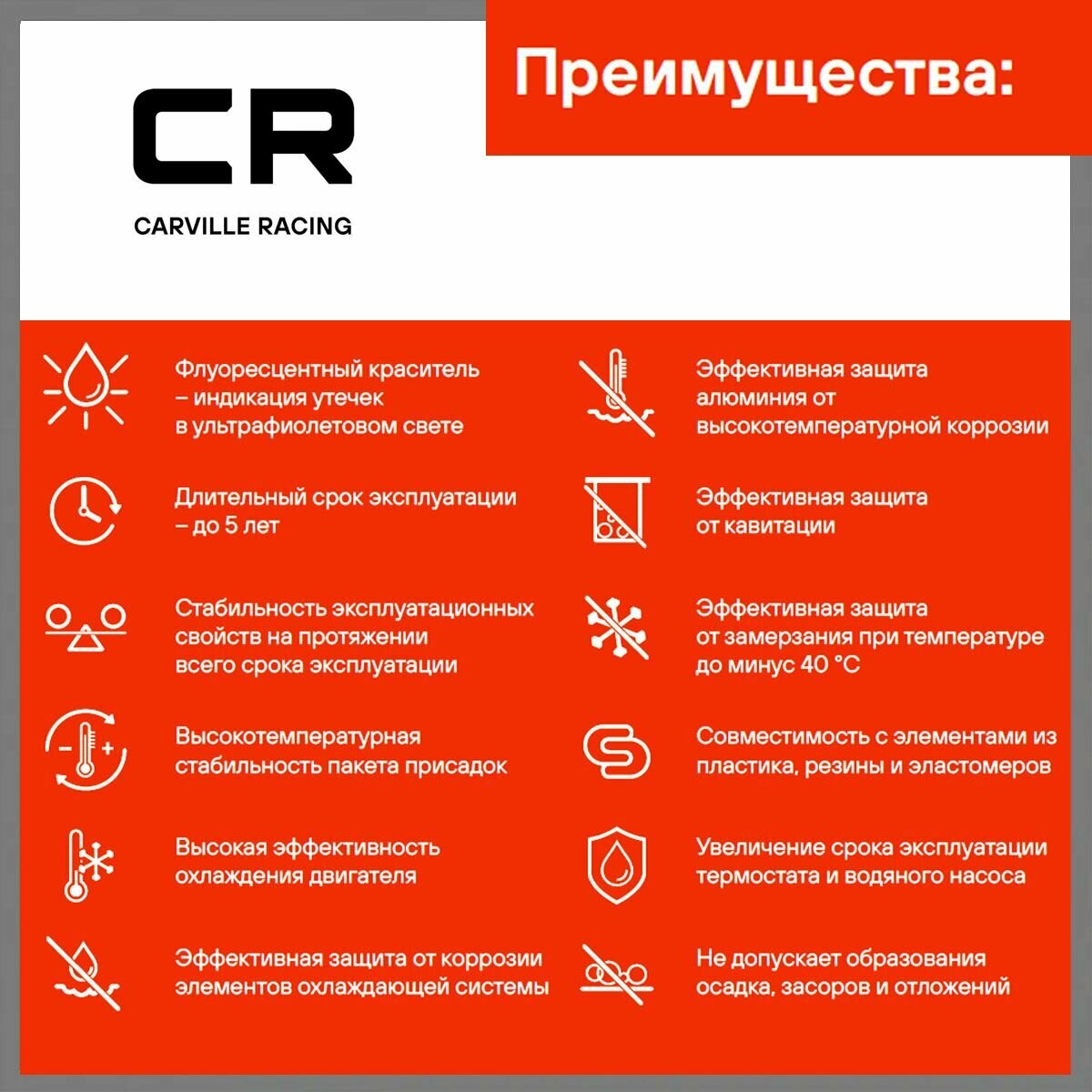10 цен на Антифриз готовый CARVILLE RACING карбоксилатный желтый флуоресцентный -40 С Type D L2018535, 1 кг