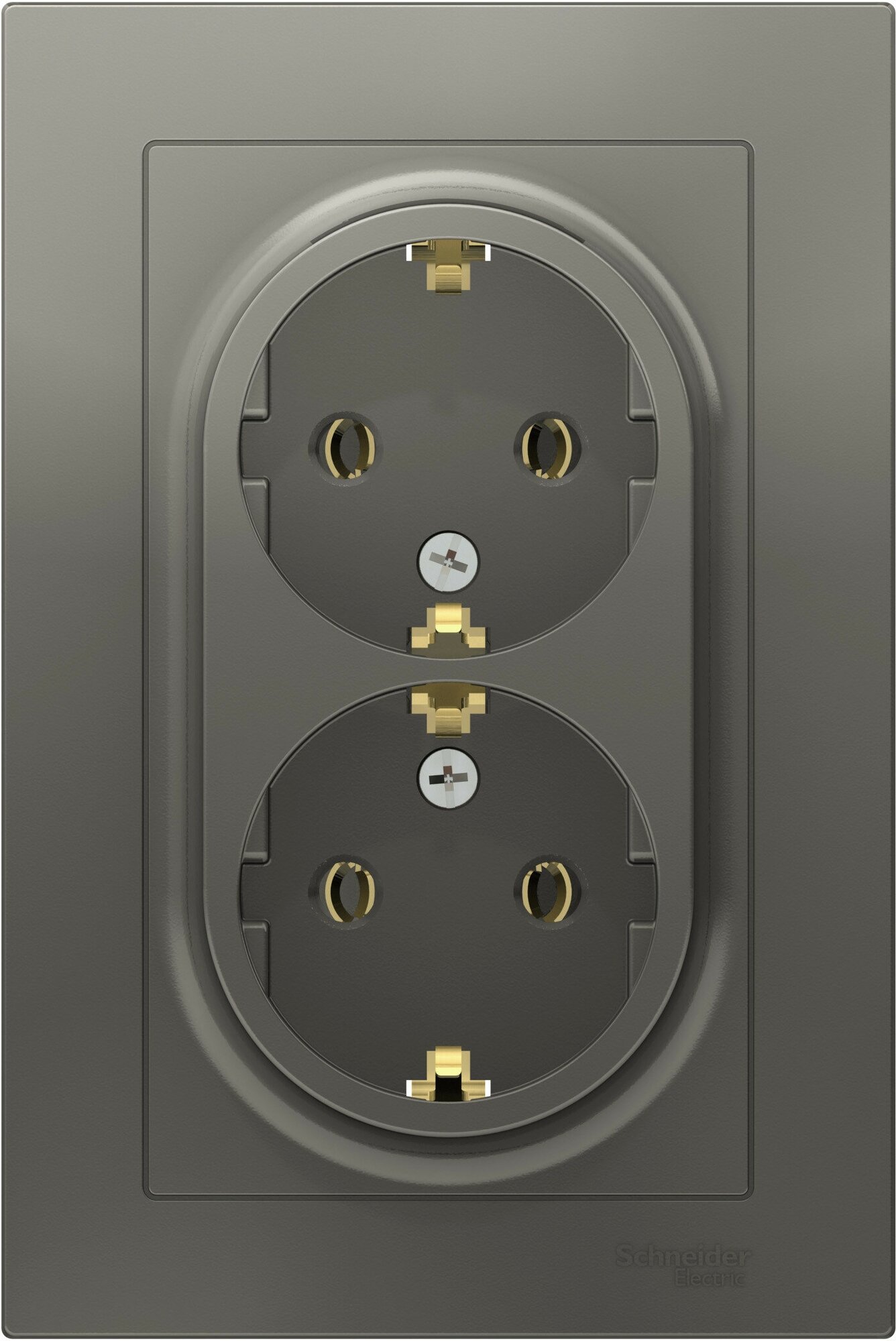 Розетка двойная с заземлением в сборе Schneider Electric AtlasDesign 16А, сталь ATN000924