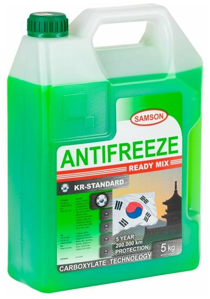 | Комплектация | Антифриз Samson KR-Standard, 5 кг (зел.) special Korea cars пластиковая канистра 1шт |