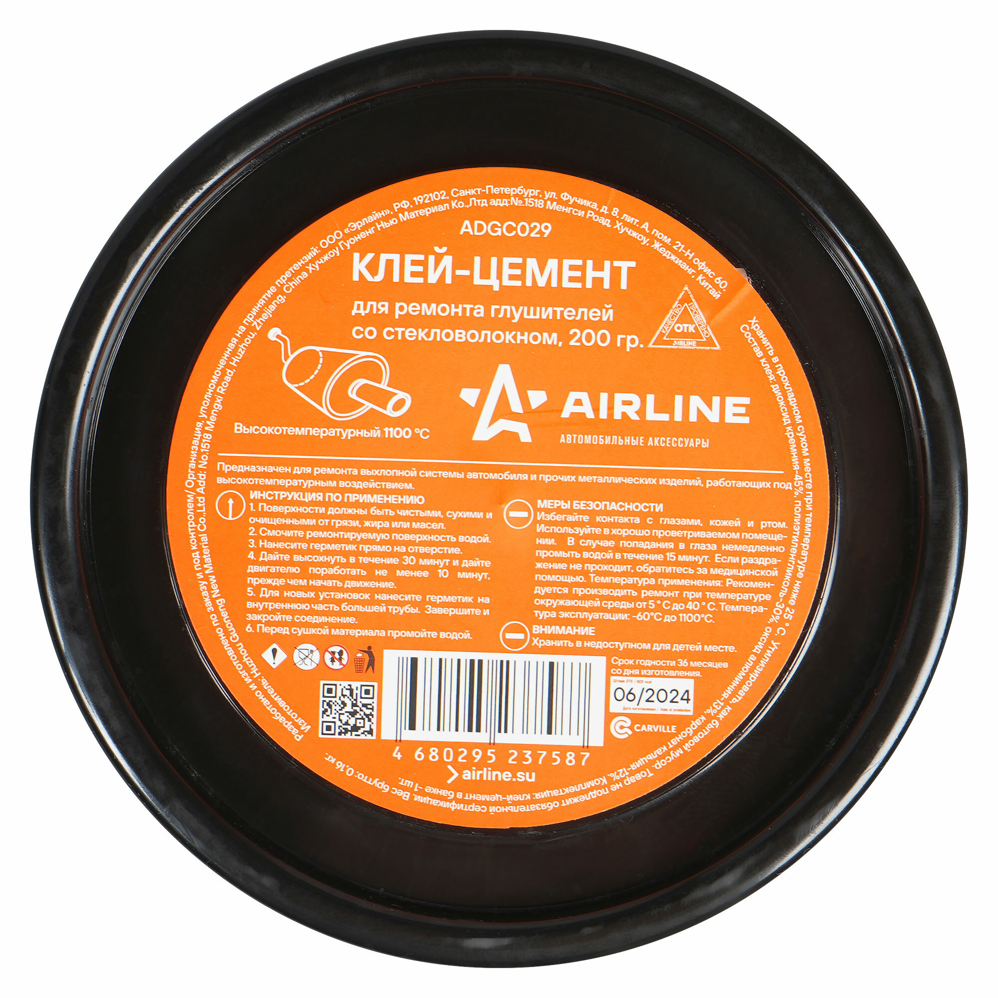 Клей-цемент для ремонта глушителей со стекловолокном, банка, 200 гр. ADGC029 AIRLINE информация: