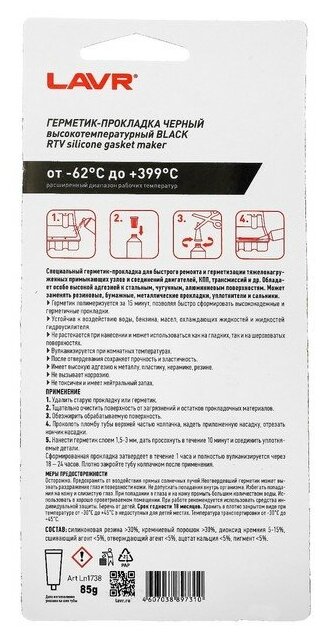 Отзывы на Герметик-прокладка черный высокотемпературный Black LAVR, 85 Г, Ln1738