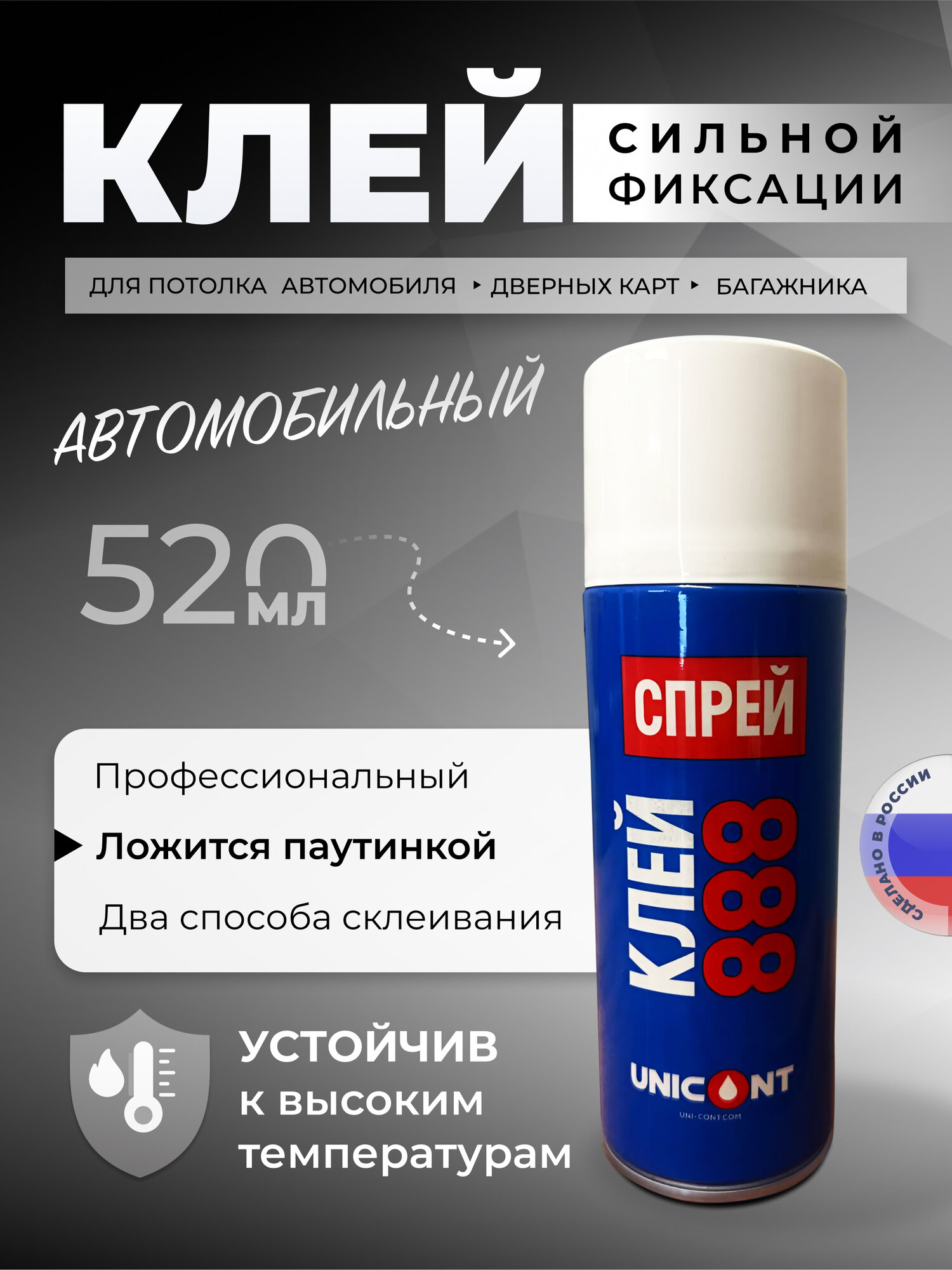 10 цен на Клей спрей 888 520 мл аэрозоль автомобильный универсальный в балончике для карпета алькантары бесцветный потолка экокожи