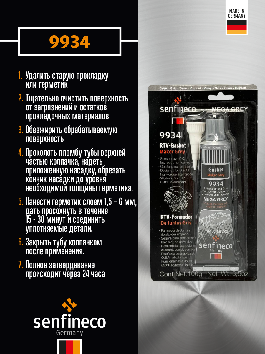 Герметик-прокладка серый (grey) высокотемпературный Senfineco 100г информация: