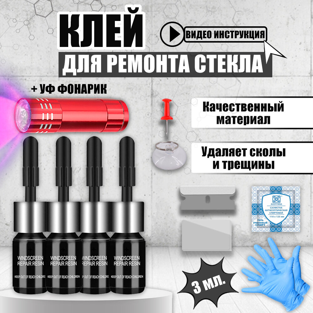 10 цен на Набор для ремонта лобового стекла + ультрафиолетовый фонарь
