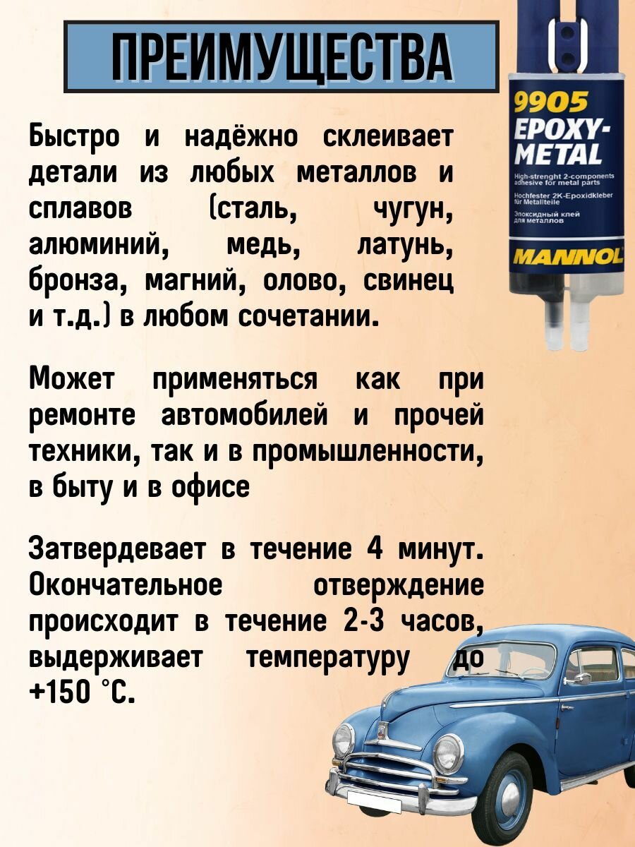 Эпоксидный двухкомпонентный клей для металла Mannol 9905 жидкий металл Epoxi-Metal 30г информация: