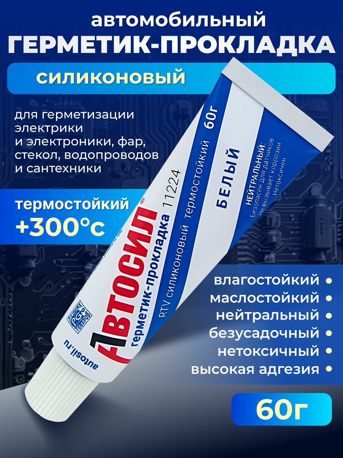 Герметик-прокладка белый, высокотемпературный для автомобиля и ремонта, автосил, в тубе, 60г. информация: