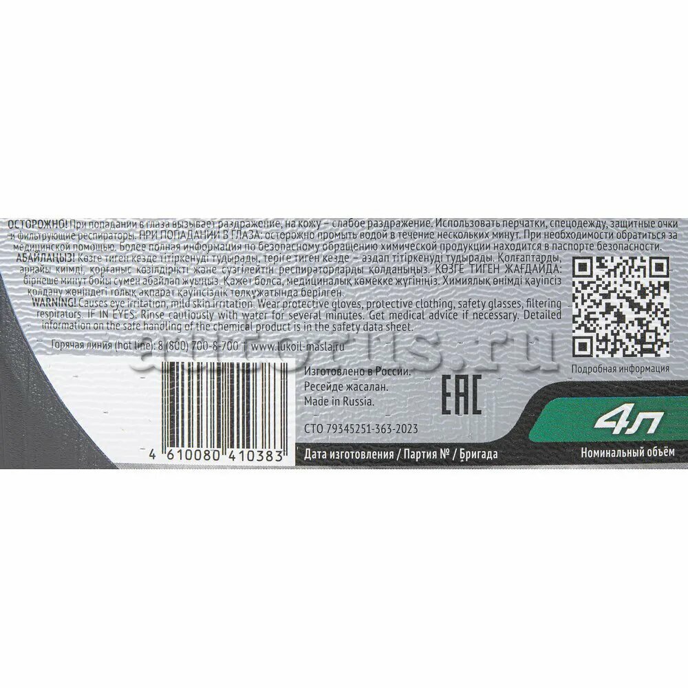 10 цен на Масло трансмиссионное LUKOIL Synth ТМ-4, синтетическое, вязкость 75W-85, стандарт GL-4, 4л. артикул: 3413404