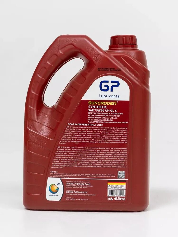 10 цен на General Petroleum SYNCROGEN MTF 75W90 GL-5 Масло трансмиссионное, 4 л