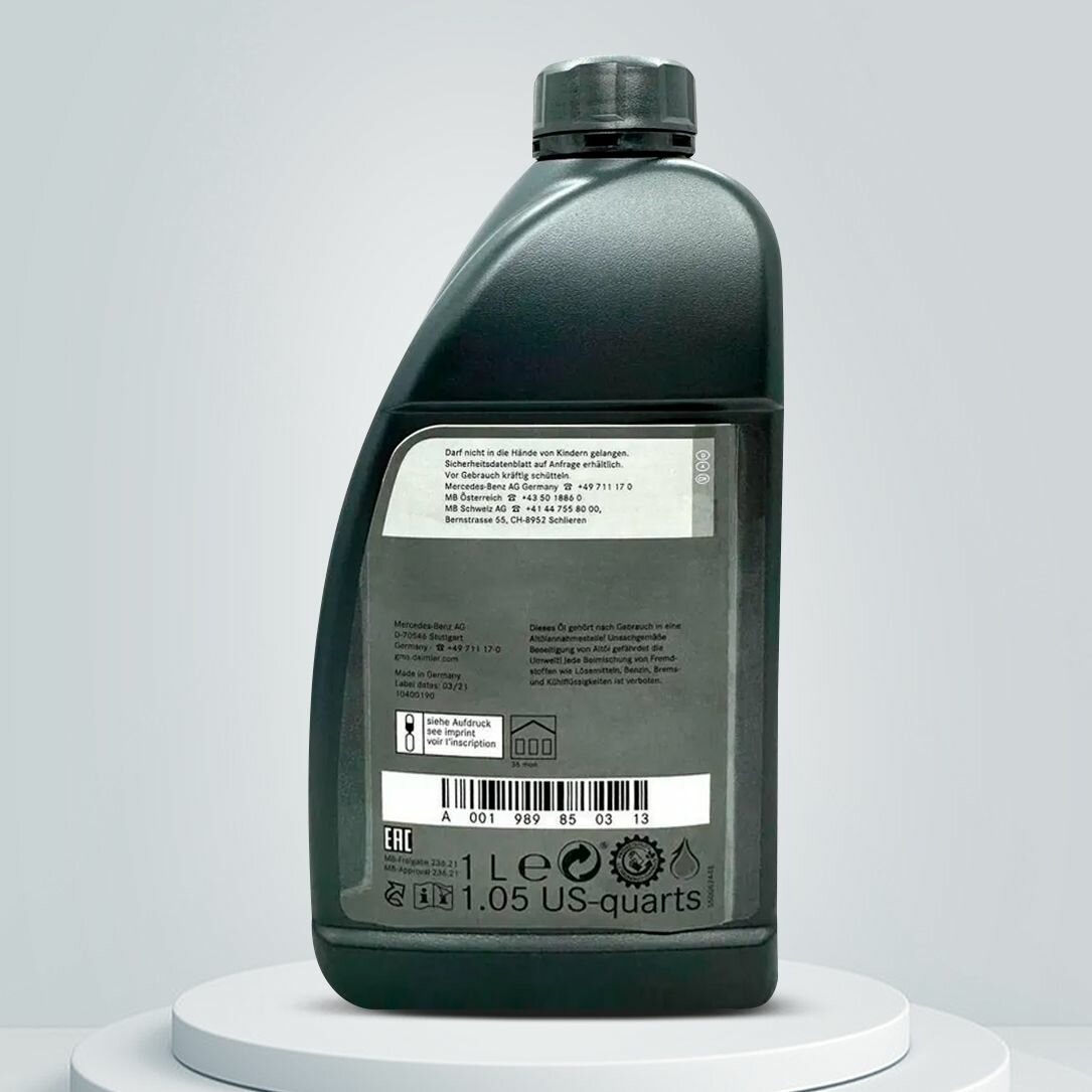 | Дополнительная информация | Трансмиссионное масло. АКПП. Mercedes Benz. ATF DCT MB 236.21. 1л. A001989850313. Мерседес. Масло в коробку для Мерседес. 236,21. mercedes. Масло. |