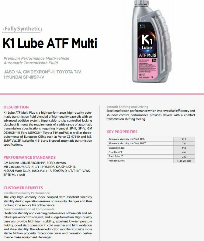 Масло трансмиссионное всесезонное K1 Lube ATF Multi канистра 4 литра информация:
