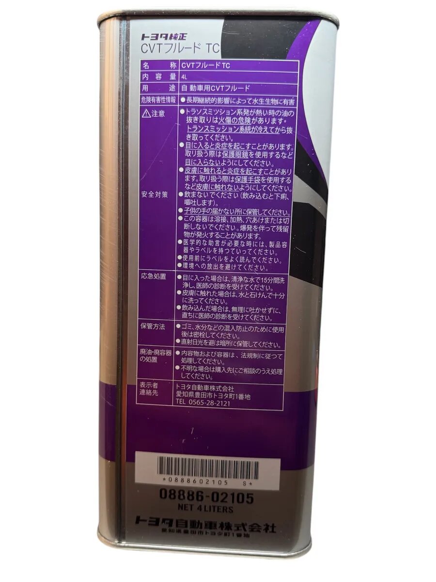 Масло трансмиссионное Toyota CVT FLUID TC, для вариаторных трансмиссий, 4 л информация: