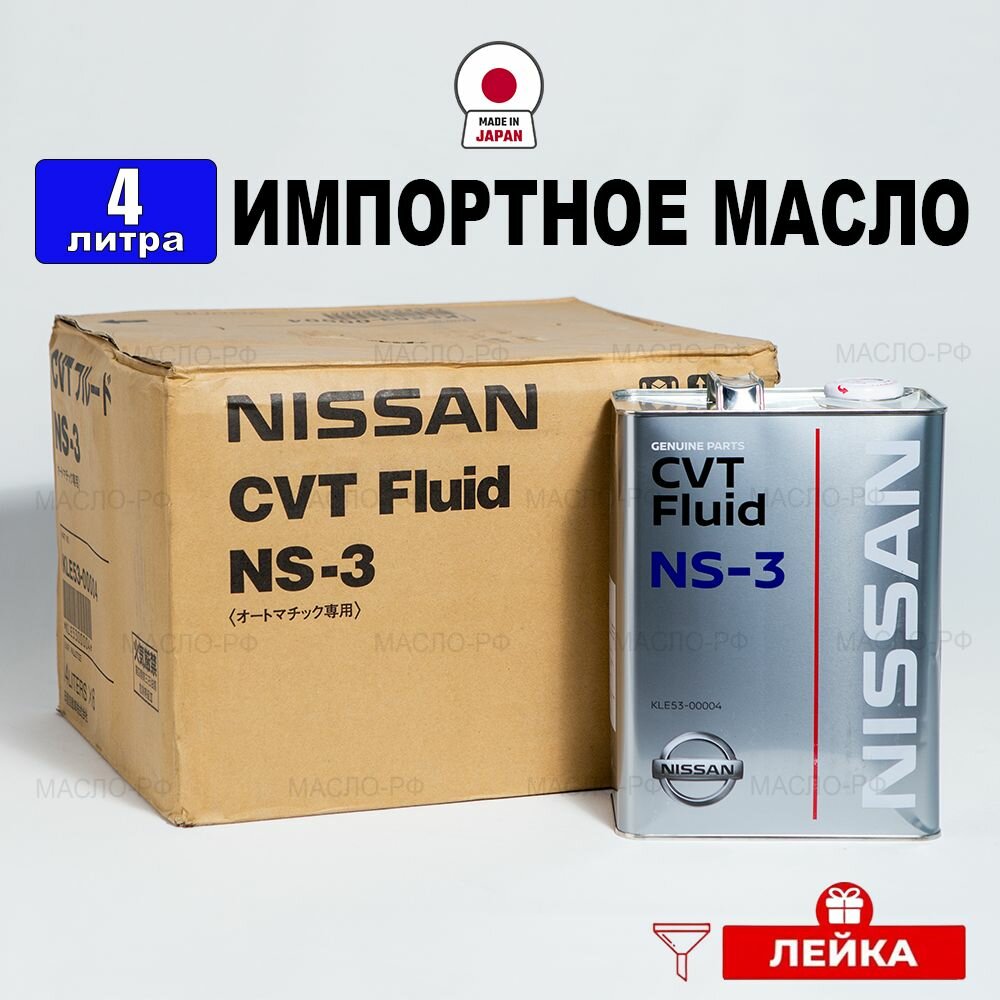 Масло трансмиссионное Nissan CVTF NS-3 (Япония), (4л) + лейка, жидкость синтетика для легкового и грузового транспорта с вариатором Ниссан KLE5300004, РТЛ информация: