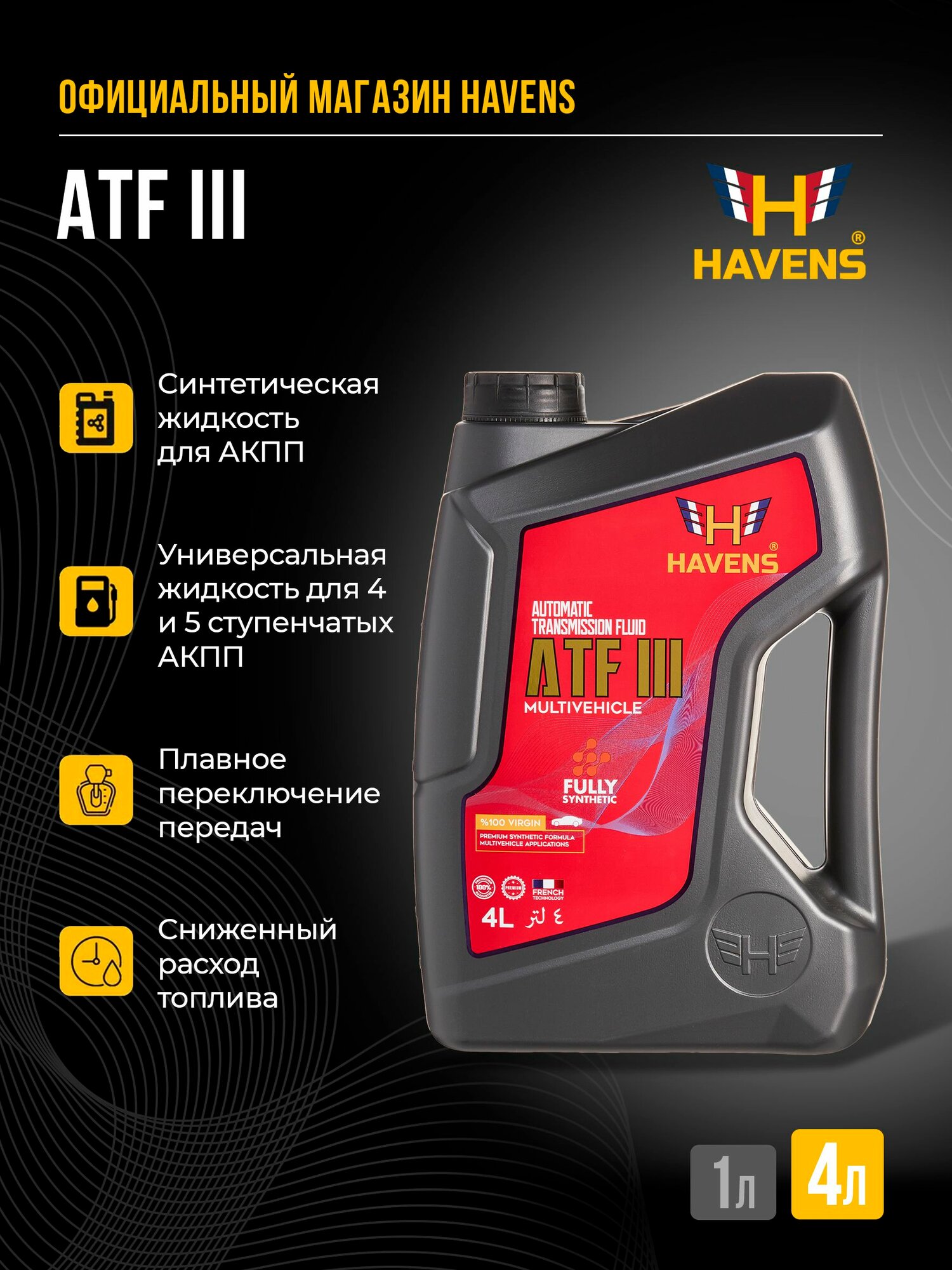 Трансмиссионное масло HAVENS ATF III синтетическое, 4 л информация:
