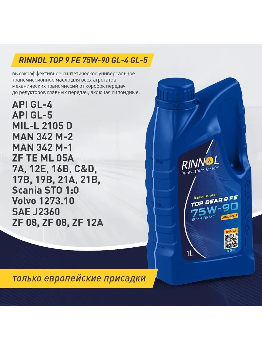 Масло трансмиссионное TOP GEAR 9 FE 75W90 GL4GL5 1л 100827 информация: