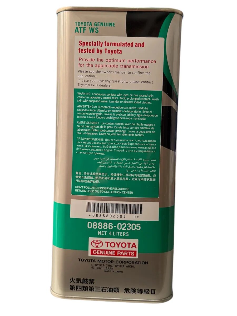 Трансмиссионное масло toyota ATF WS, для АКПП, синтетическое информация: