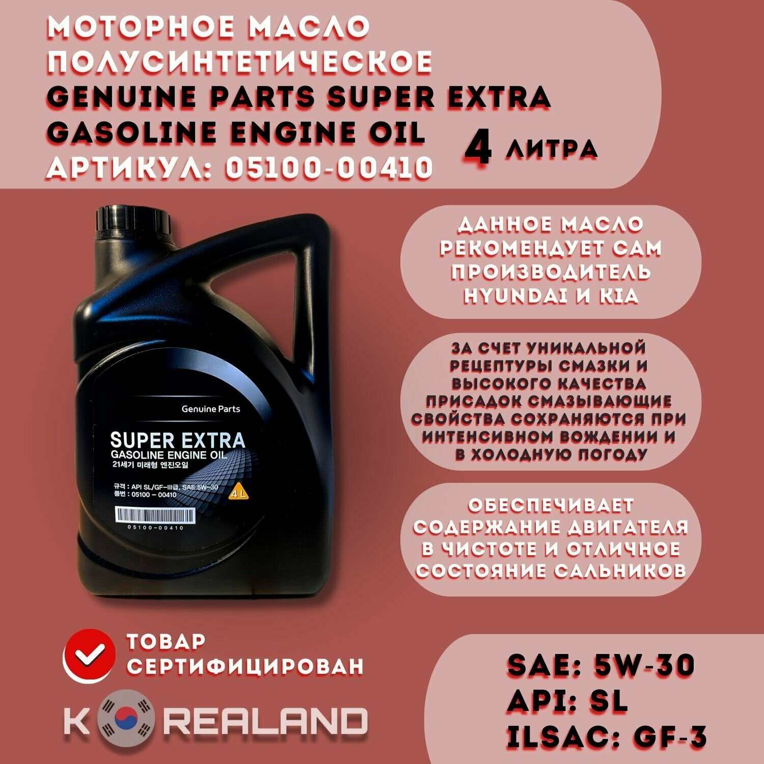 Моторное масло Super Extra + фильтры для автомобиля Хендэ Солярис и Киа Рио 2011-2017 года выпуска с двигателем объёмом 1,4 и 1,6 литра информация: