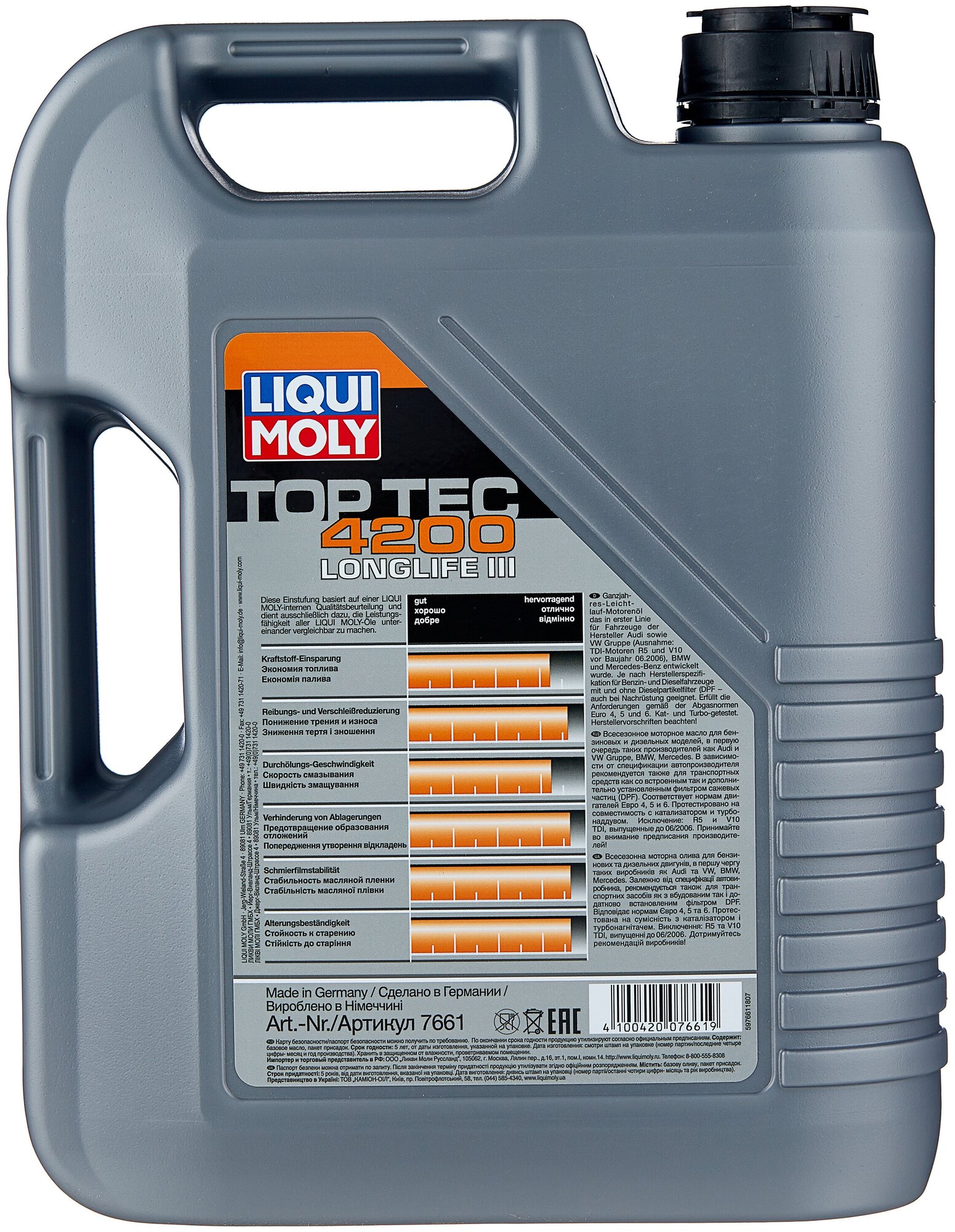 HC-синтетическое моторное масло LIQUI MOLY Top Tec 4200 5W-30, 5 л, 1 шт. информация: